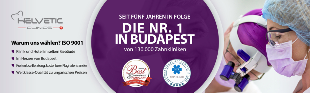 Unsere Zahnklinik befindet sich in Budapest, Ungarn. Benötigen Sie professionelle und qualitativ hochwertige Zahnbehandlungen zu vernünftigen Preisen, ohne lange Wartelisten? Seit 2014 trägt Helvetic Clinics Budapest die Auszeichnung von GCR als “Beste Zahnklinik Ungarns”.